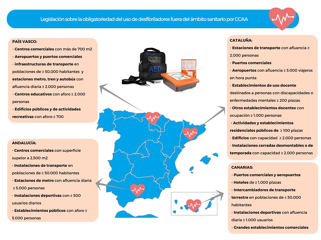 Los espacios cardioprotegidos son aquellos edificios o zonas que tienen, como mínimo, un desfibrilador y cuentan con personal cualificado para utilizarlo ante un caso de parada cardiorrespiratoria. El aumento de este tipo de espacios en nuestro país se convierte en algo necesario si tenemos en cuenta las siguientes premisas sobre las paradas cardíacas:
