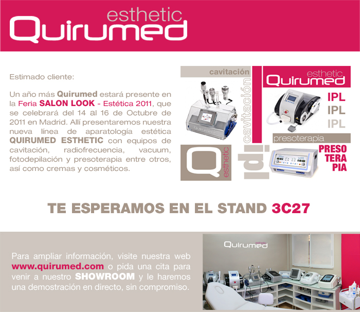 3 octubre 2011 Cristina Martínez - Periodista espec. en Salud Quirumed en Salon Look Internacional Twitter Facebook Google+ Twitter Facebook Google+ POSTS QUE TE PODRÍAN INTERESAR Nueva certificación ISO 45001 de seguridad laboral para Quirumed8 julio 2019 Madrid: Ciudad «Cardioprotegida» gracias a los desfibriladores4 octubre 2017 Quirumed obtiene la Certificación OHSAS 18001:2007 por parte de AENOR16 junio 2017