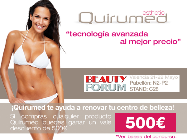 Quirumed estará presente en la próxima feria Beauty Forum que se celebra en Valencia los próximos 21 y 22 de mayo. Si tienes un centro de estética o vas a comenzar con el negocio, te invitamos a que visites nuestro stand C28 y puedas informarte y ver demostraciones de los productos de aparatología estética más novedosos del mercado: equipos de cavitación multifuncional.