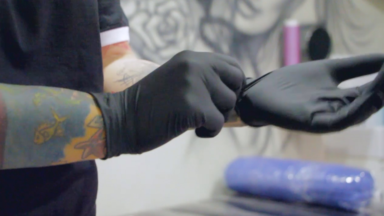| Sika Tattoo, colaboradora de Quirumed, haciendo un tatuaje |